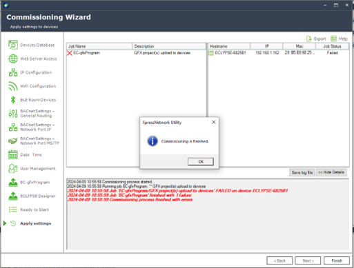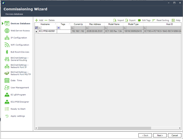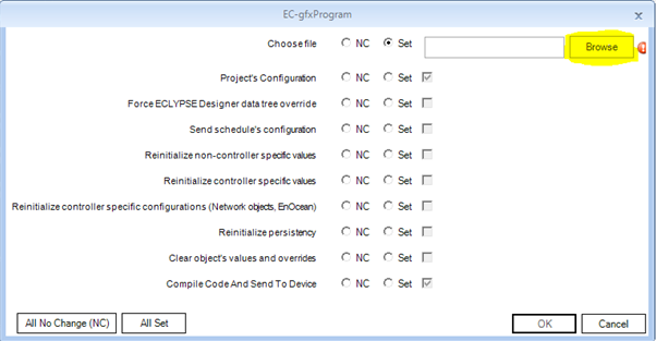 Once all the respective information for each controller has been set up from “devices database” to “user management”, the EC-gfxProgram can be selected to load