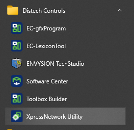 Launch the XpressNetwork Utility It can be found with either this desktop shortcut or under the “Distech Controls” folder in the Windows Start menu.