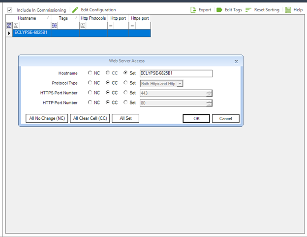 a. If the section of the configuration is applicable and needs to be applied, ensure you have clicked the “Include in Commissioning” check box to enable to configurations.