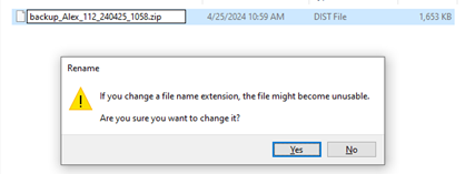 Rename file type from .dist to .zip and save the change
