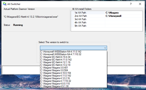 - Once you have selected the appropriate software version to run, the AX Switcher software will start your daemon and launch the selected version of Niagara.